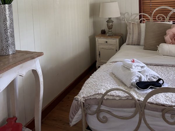 Enjoy a continental breakfast each morning, access to basic cooking facilities, and indulgent features like a private magnesium spa and an authentic hot stone sauna. Plus, you'll have direct access to Flutterbies Café through our private garden entrance, blending convenience with charm.