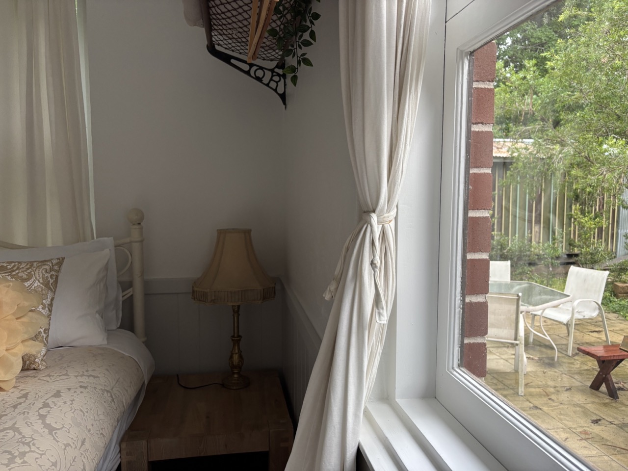 During your stay, enjoy a continental breakfast with thoughtful provisions, access to basic cooking facilities, and indulgent amenities such as a private magnesium spa and an authentic hot stone sauna. Plus, you’ll have the unique convenience of direct access to Flutterbies Café from the garden, offering the perfect blend of privacy and connection to the local experience.