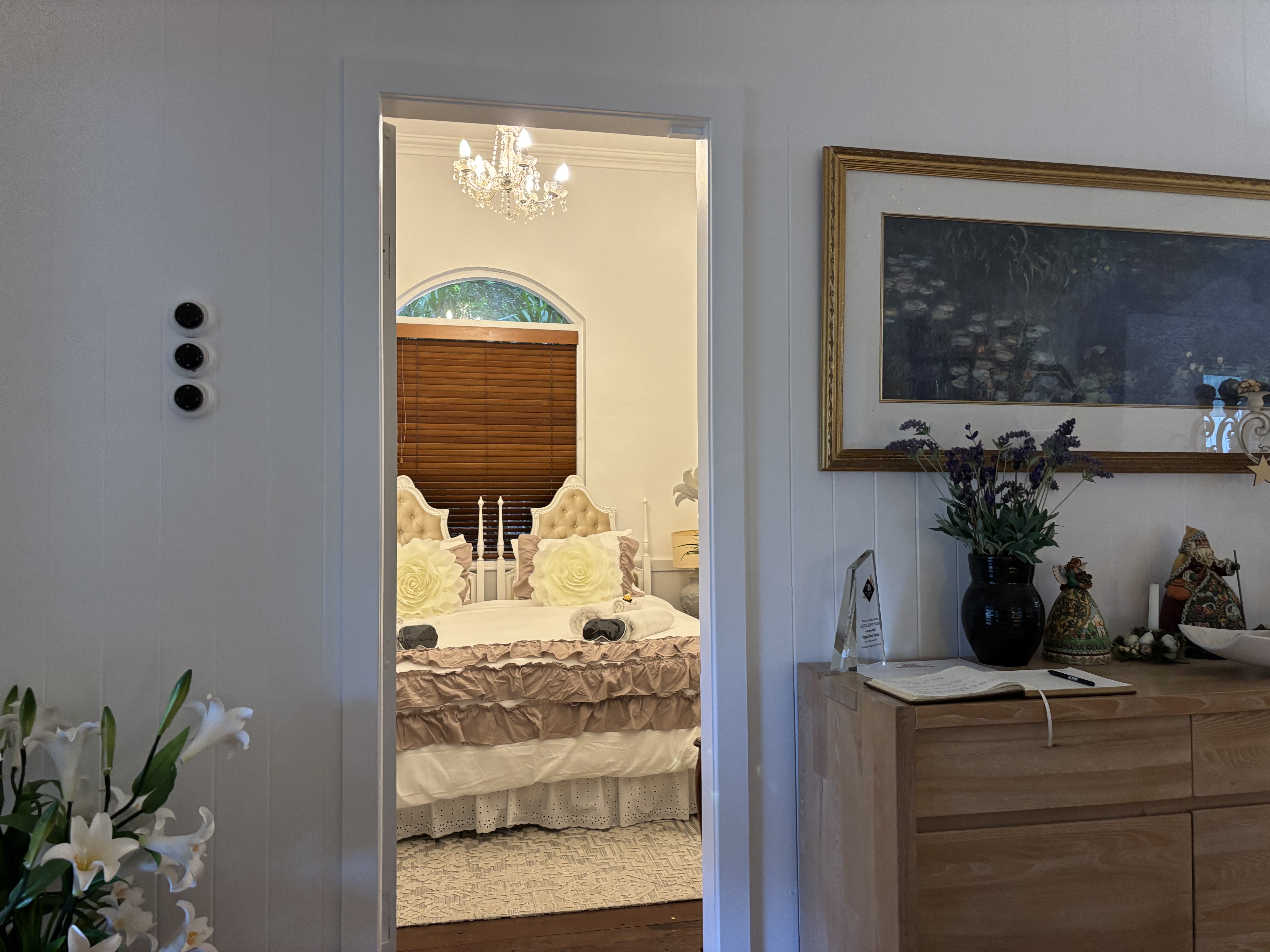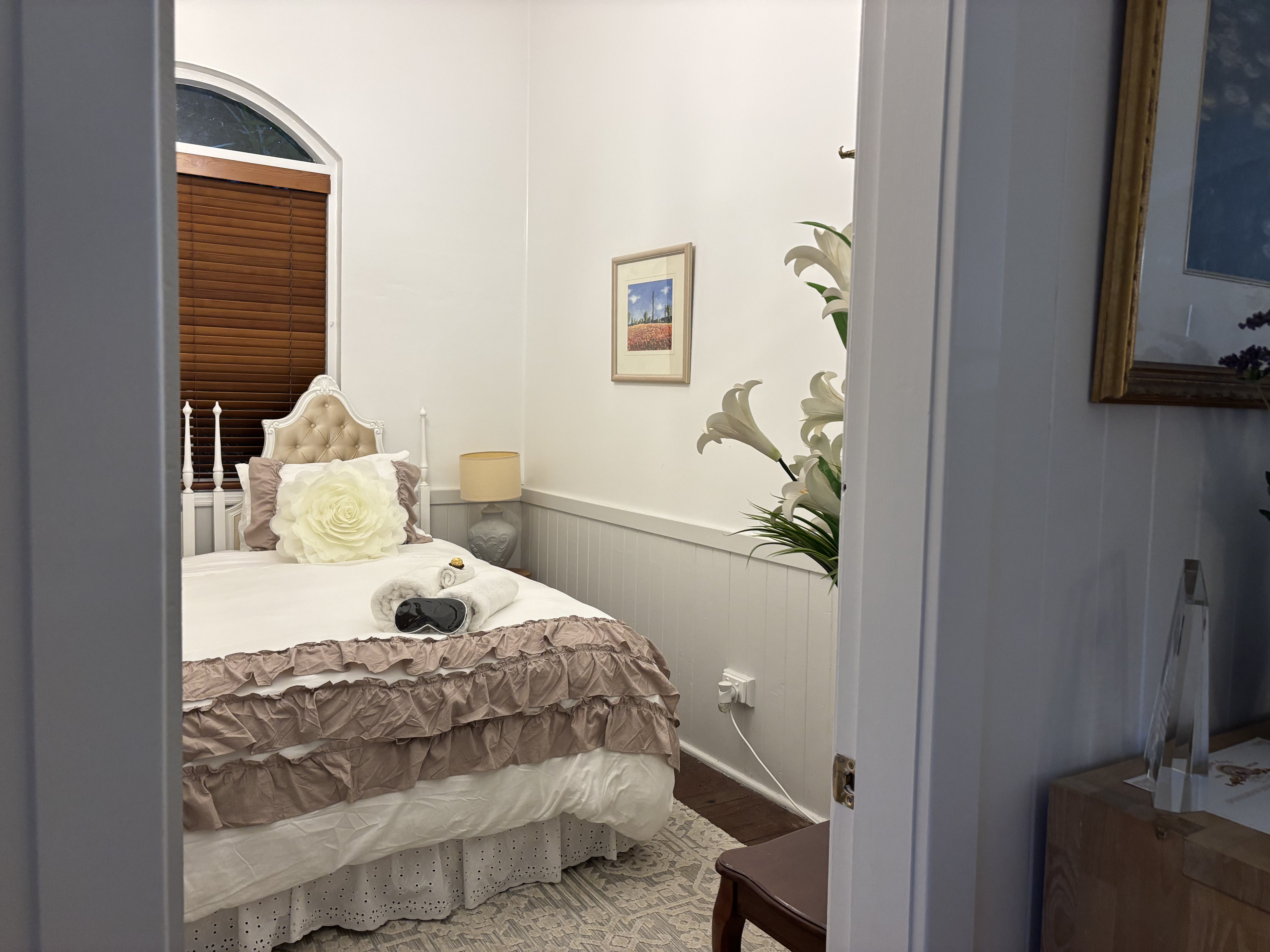Wake up to a continental breakfast, and enjoy access to basic cooking facilities for light meals during your stay. Take time to unwind in our private magnesium spa or relax in the authentic hot stone sauna. Additionally, you’ll enjoy direct access to Flutterbies Café through the guesthouse’s garden, blending convenience with the charm of Tyalgum’s vibrant atmosphere.